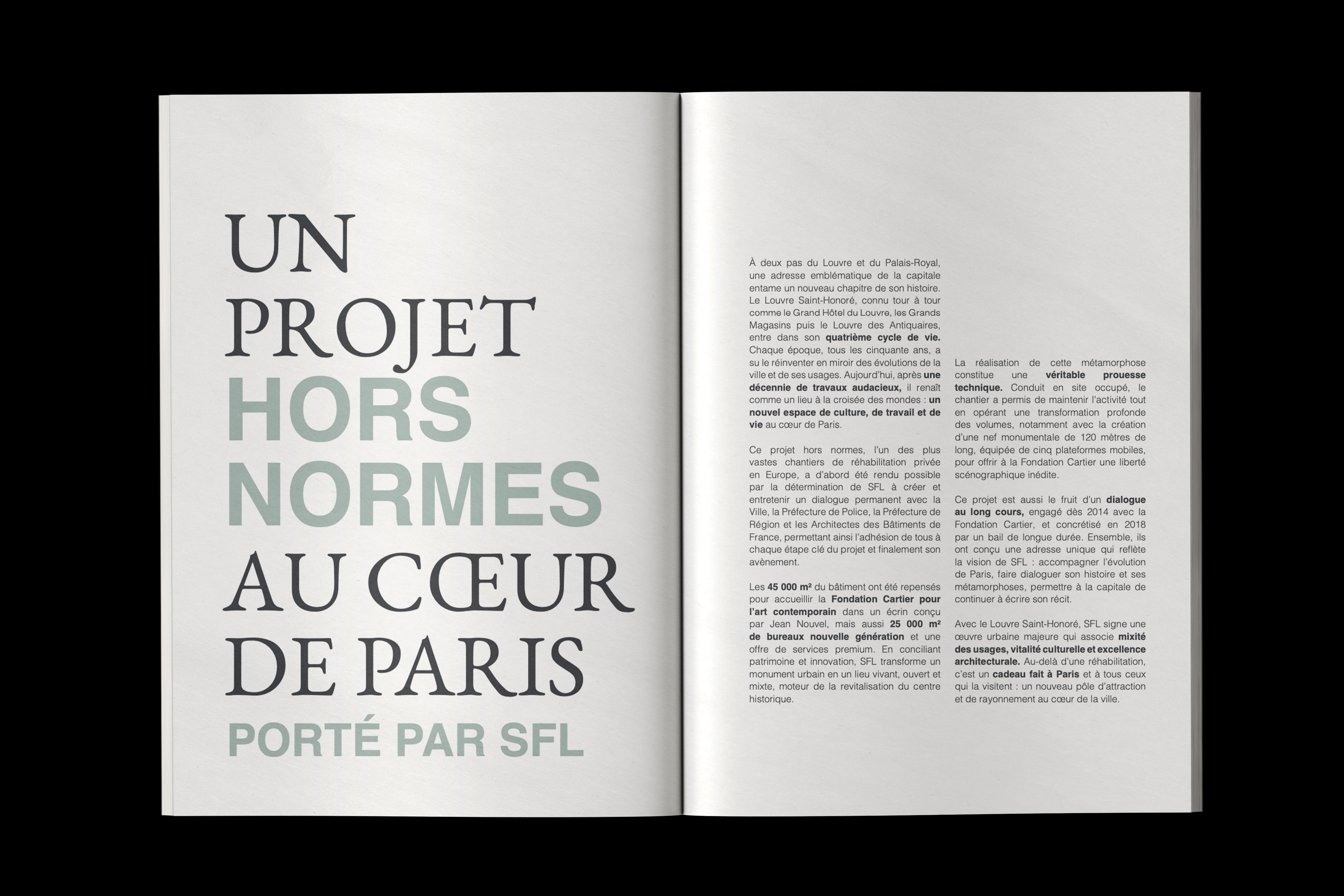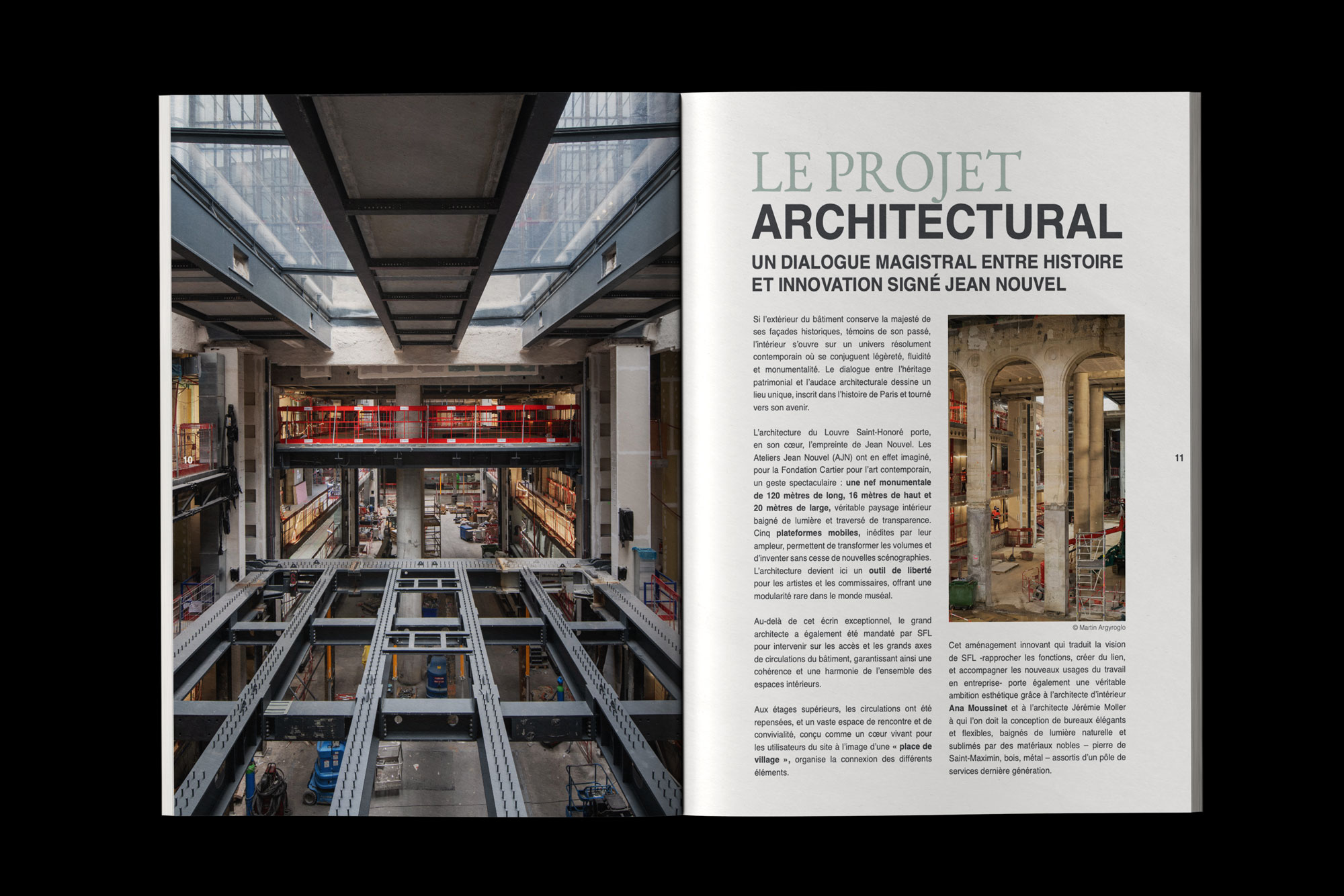 Pour la réouverture de la Fondation Cartier, après plusieurs années de transformation, un nouveau chapitre s’ouvre au sein des anciens Grands Magasins du Louvre. J’ai conçu et réalisé le dossier de presse, en développant une mise en page contemporaine et sensible, pensée comme un dialogue entre patrimoine, architecture et création. Le projet explore un équilibre entre élégance éditoriale et immersion visuelle, afin de traduire l’identité de la Fondation et l’esprit de ce lieu chargé d’histoire.